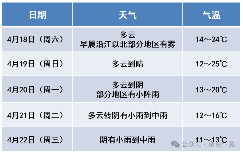 據(jù)南京氣象5日預報