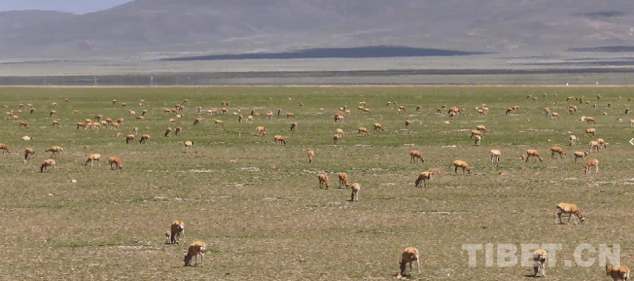 西藏那曲市申扎縣境內棲息的藏羚羊群申扎縣融媒體中心供圖