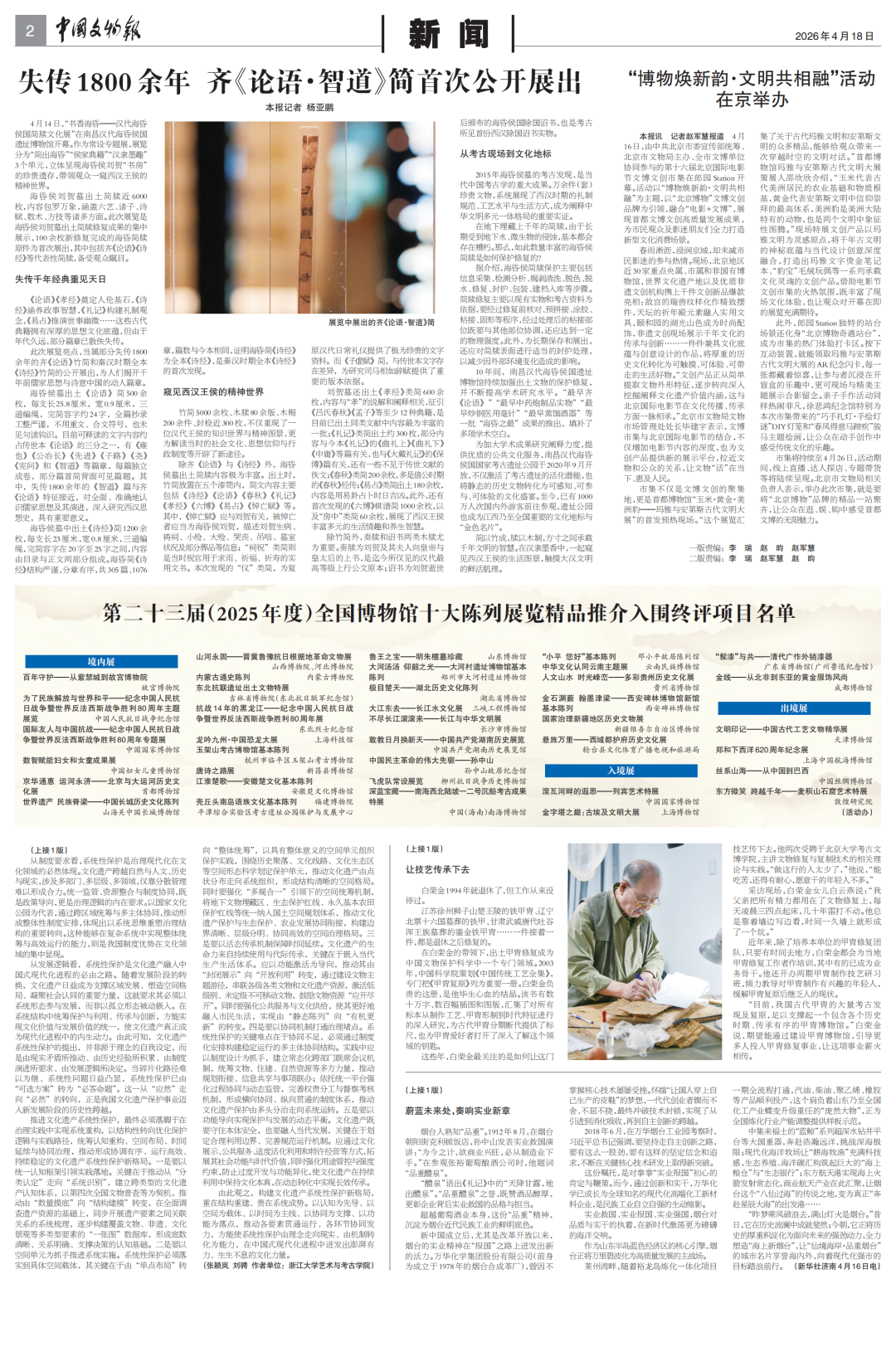 本公號刊載的作品(含標(biāo)題及編輯所加的版式設(shè)計、文字圖形等),未經(jīng)中國文物報社授權(quán)不得轉(zhuǎn)載、摘編、改編或以其他方式使用,授權(quán)轉(zhuǎn)載的請注明來源及作者。