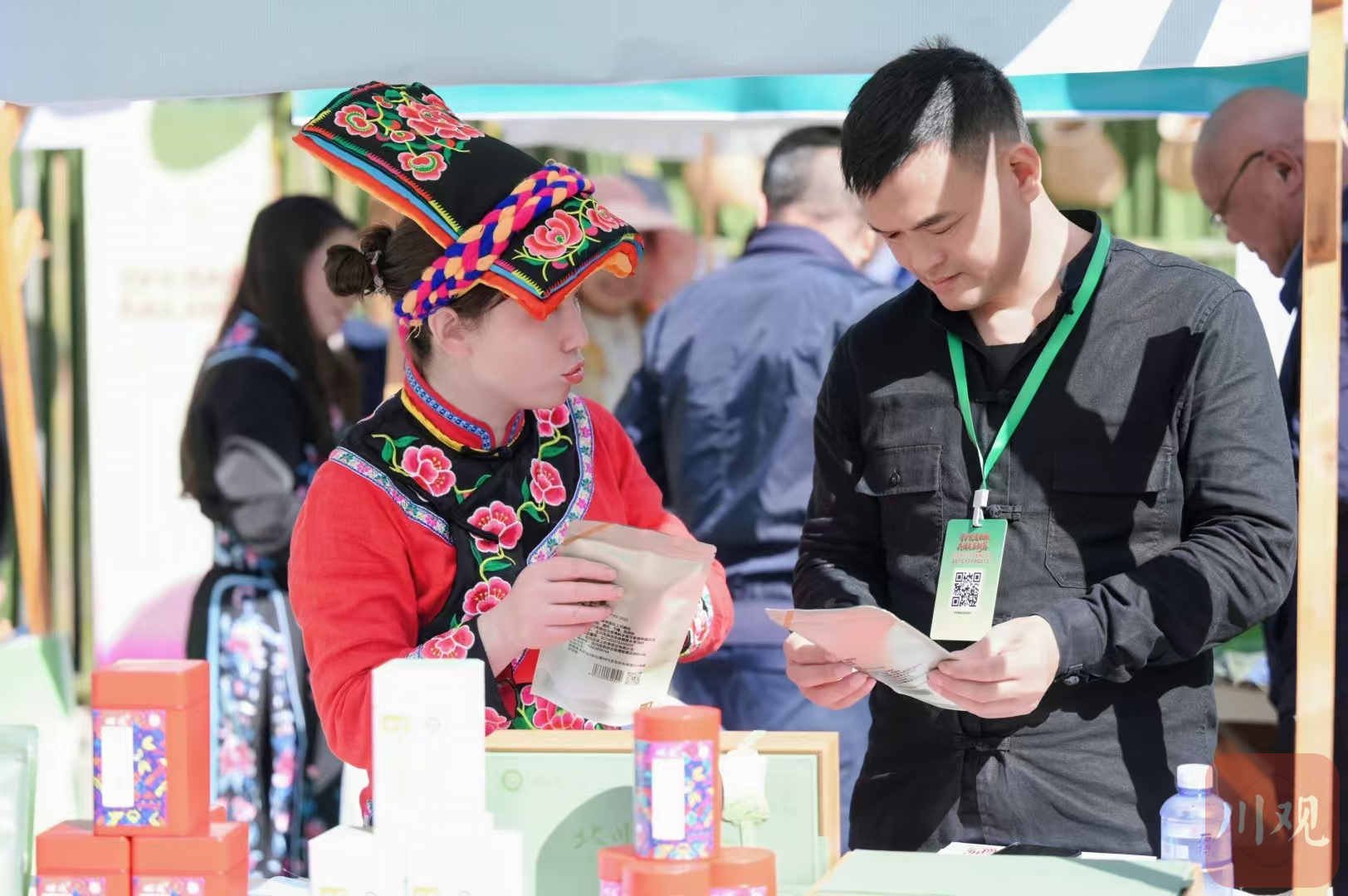 在會場的茶葉集市上,十余家當地茶企將自家最具特色的茶產品整齊陳列,苔子茶作為主角,更是被許多茶企擺在顯眼位置。其茶葉條索緊結,湊近細嗅,一股獨特的山野清香撲面而來,現場的嘗鮮杯引得不少參會者駐足品嘗。一位來自浙江的采購商端起一杯苔子茶,湊近鼻尖輕嗅,品上一口后贊嘆道:“這北川苔子茶的香氣確實很獨特,帶著山野的清香,湯色翠綠明亮,回味甘甜?!?/p>
