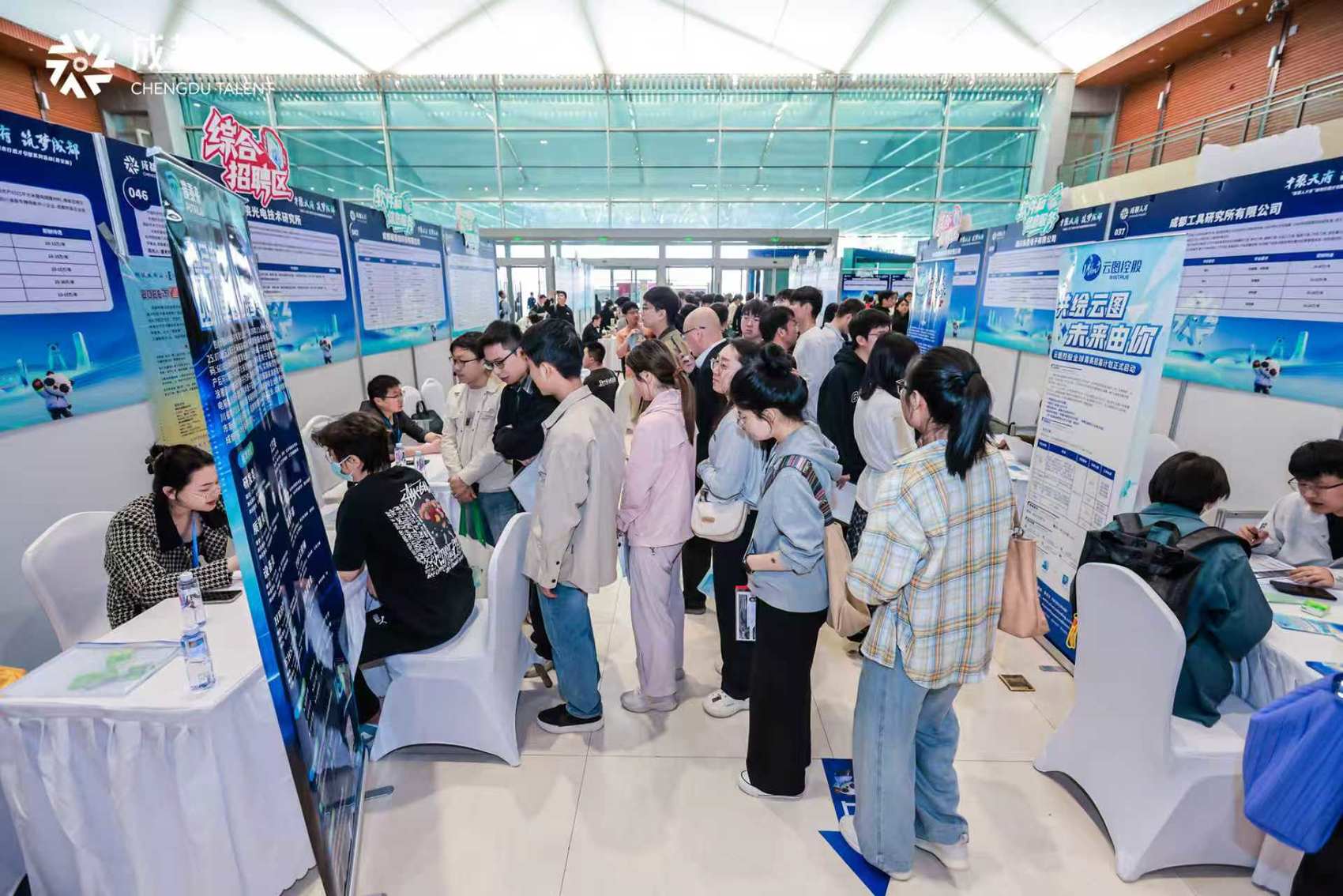 綜合招聘會與推介會同步開啟,成為當天人氣最旺的區域。據介紹,本次活動共有244家在蓉重點用人單位現場攬才,涵蓋航空航天、低空經濟、軟件和信息服務等重點產業領域,總計提供招聘崗位1008個,人才需求總量達4275人。
