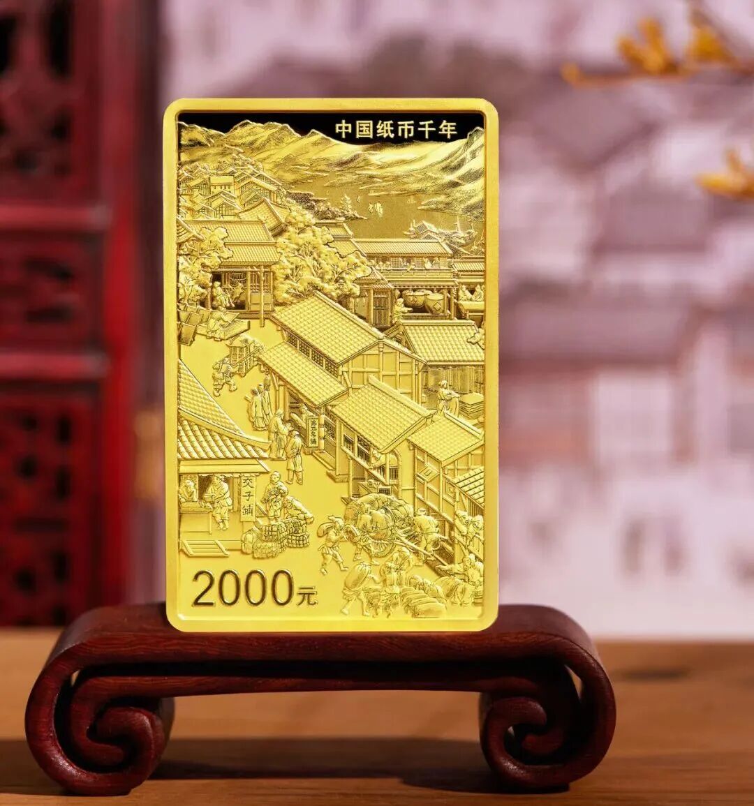 大熊貓國家公園項目是四姑娘山的紀念幣首秀,次年發行的中國紙幣千年金銀紀念幣項目中,150克長方形金幣背面圖案中的遠景設計就提取了多個在北宋詩詞中的地域特色景觀,包括錦江、望江樓、都江堰、青城山,以及四姑娘山等,這些元素銜接融合,將“天府之國”如詩如畫的自然美景如長卷鋪展開來。