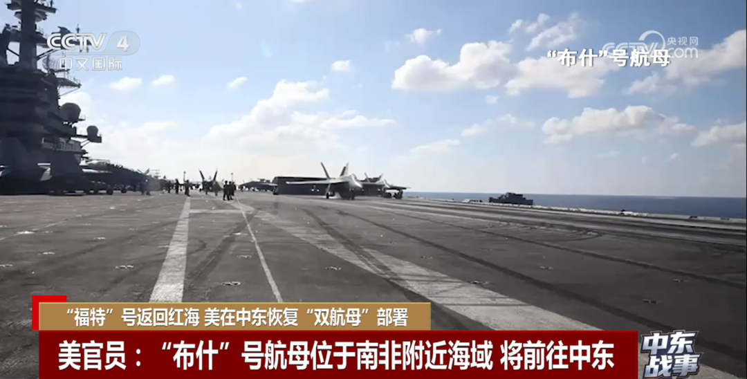 美國官員說,“布什”號航母打擊群3月下旬離開美國東海岸弗吉尼亞州諾福克港前往中東,目前位于南非附近海域。抵達中東后,該航母打擊群可能會加入現有編隊,形成“三航母”部署態勢,也可能接替“福特”號執行任務。