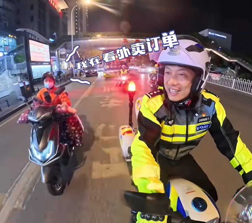 騎手尷尬地解釋說在看外賣訂單