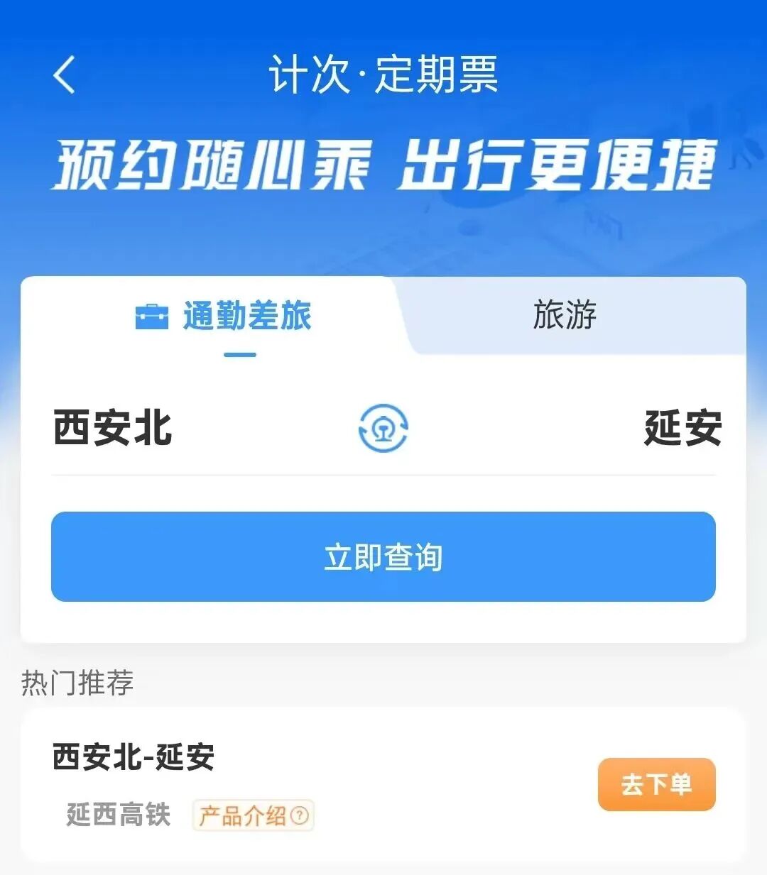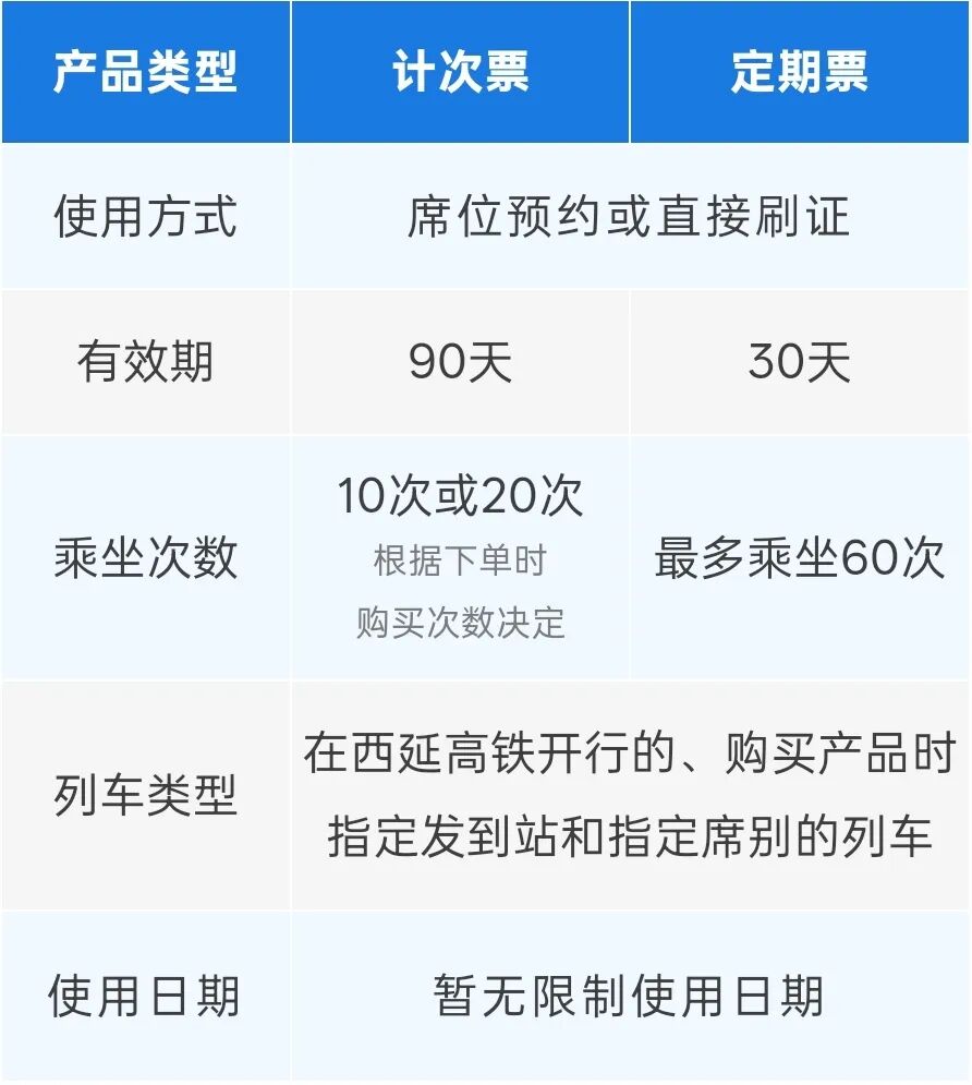 本次“計次票”和“定期票”產品覆蓋西安北、高陵、富平南、銅川、銅川北、宜君、黃陵、洛川、富縣北、甘泉北、延安11座車站,無同城站設定。