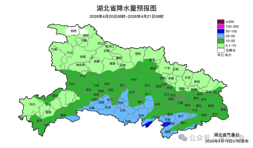 預(yù)報(bào)來源:湖北省氣象臺(tái)2026年4月18日08時(shí)預(yù)報(bào)