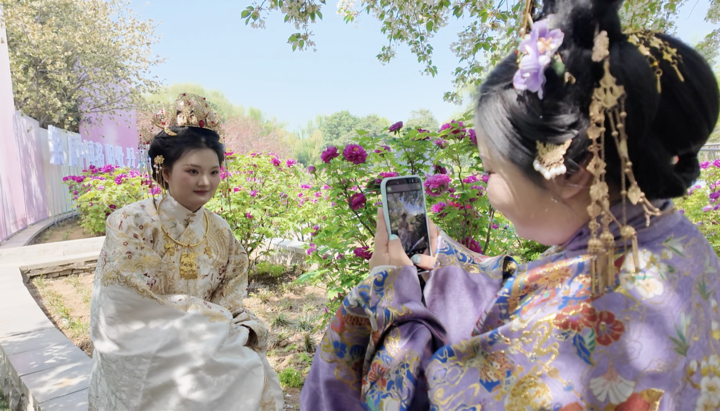 “都說‘洛陽牡丹甲天下’,實(shí)地一看,果然名不虛傳?!甭尻査逄瞥沁z址植物園內(nèi),一襲“大唐公主”妝造的江蘇游客楊欣一邊“打卡”,一邊感嘆:“穿漢服、賞牡丹、逛古城,這才是春天的最佳打開方式。”