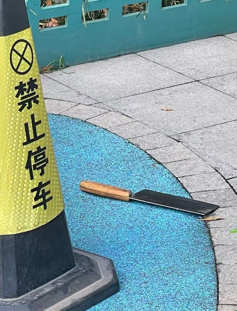 小區業主:“好危險,昨天幸好沒砸到人,砸到人絕對會出人命。當時有很多人,還有小孩在那兒,我家小孩也經常在那里玩。掉下來的不止一把刀,好像還有瓶子。有監控已經拍到了,大概是從8樓以上丟下來的。昨天晚上八九點鐘的時候,物業去了派出所,問了一下,他們說已經報給所長了,正在申請用技術手段調查。”