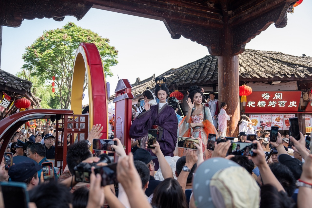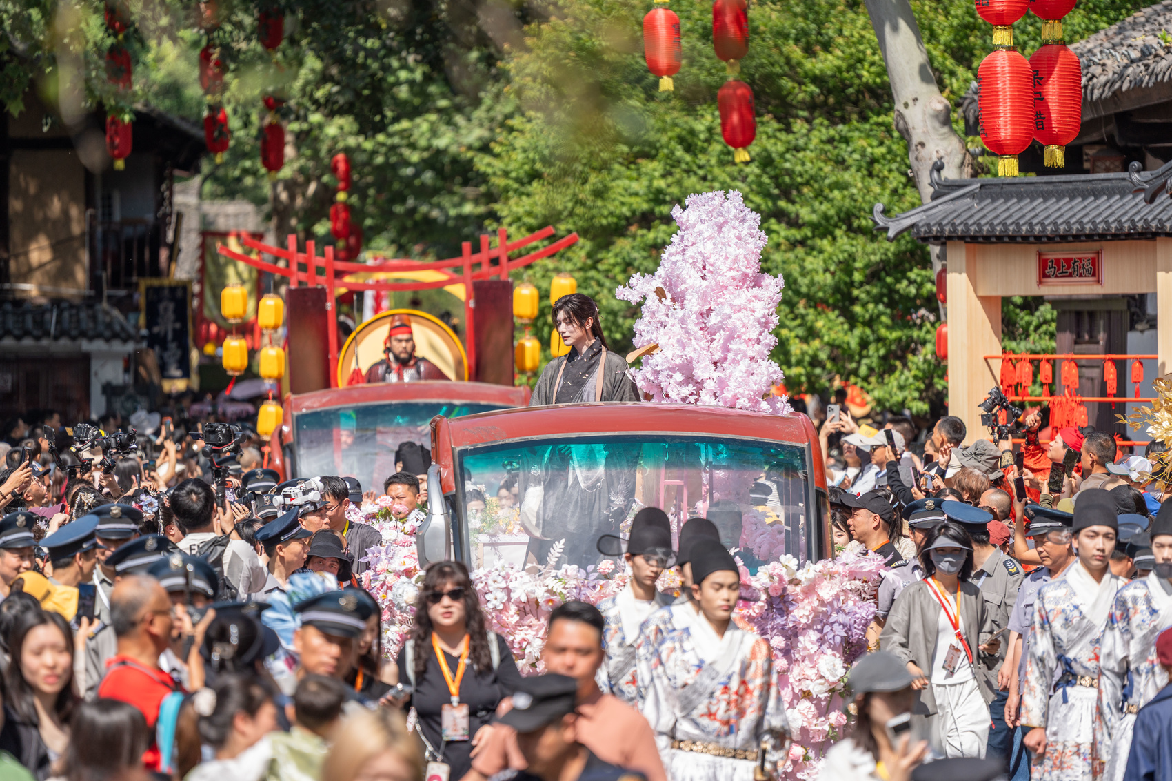 36位漢服NPC與200余位同袍組成方陣,霓裳華服與青瓦古巷交相輝映。十二花神會、武將儀仗隊、國色閬中巡游隊三大花車魚貫而出,綿延長龍穿行古城,一步一景,繪就流動的國風長卷。