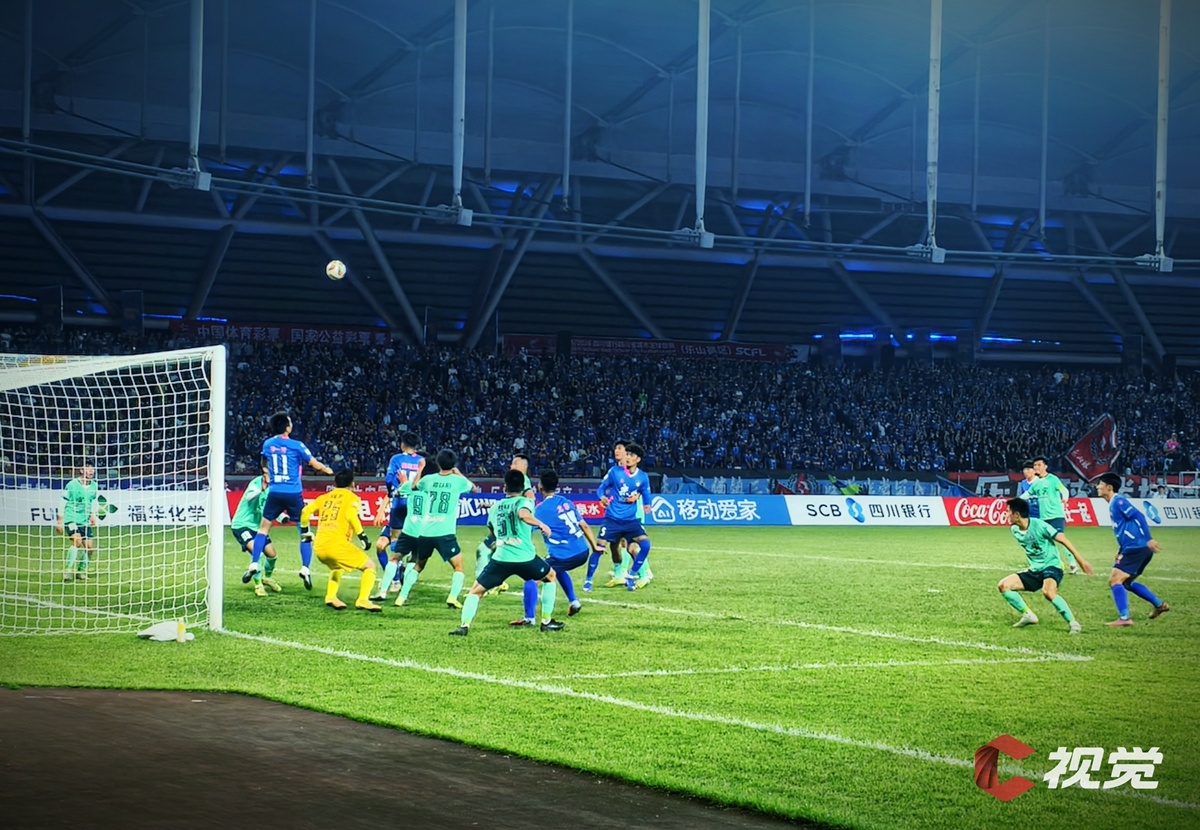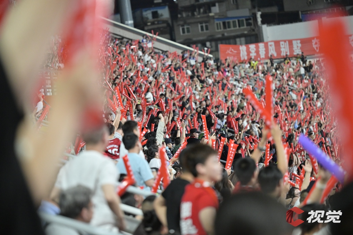 4月18日晚,“川超”決賽階段第六輪開啟,綿陽九洲長虹隊主場迎戰德陽重裝隊。現場球迷熱情高漲,吶喊助威聲此起彼伏。C視覺簽約攝影師 杜康