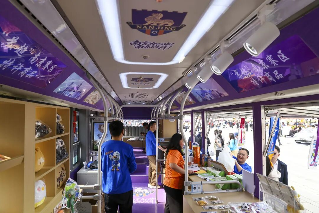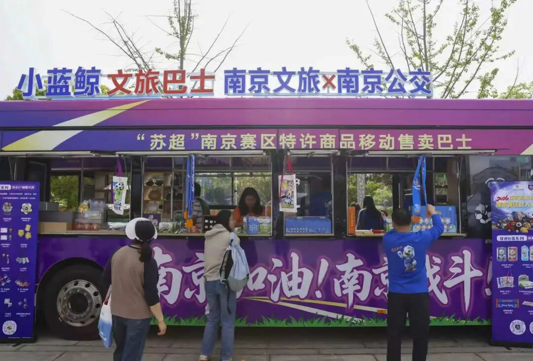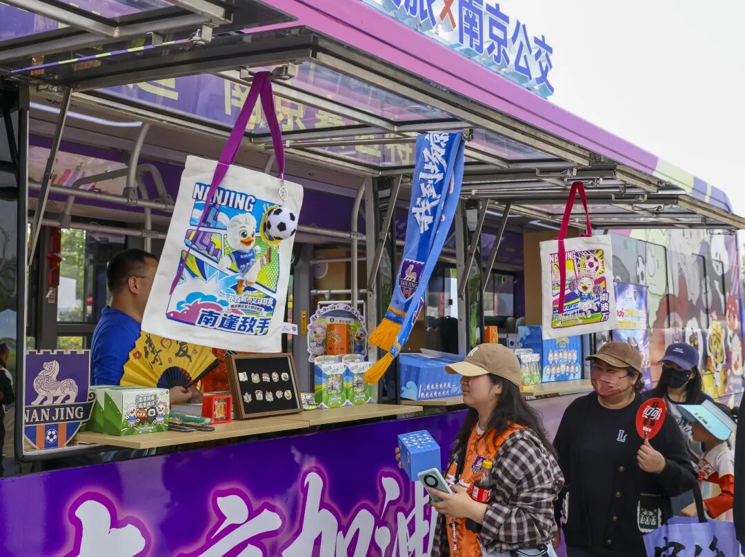 今天下午,“蘇超”南京賽區特許商品移動售賣巴士正式亮相宿遷奧體中心。巴士融合特色IP形象“萊斯鴨” 與紅山動物園“應援天團”,進行整體涂裝與內飾升級,車內集中展示、售賣19類超過50件單品,覆蓋球迷應援、城市人文紀念、聯名限定藏品三大系列“蘇超”南京賽區特許商品,成為賽場外一道特色風景線,讓足球文化與城市文旅深度融合。