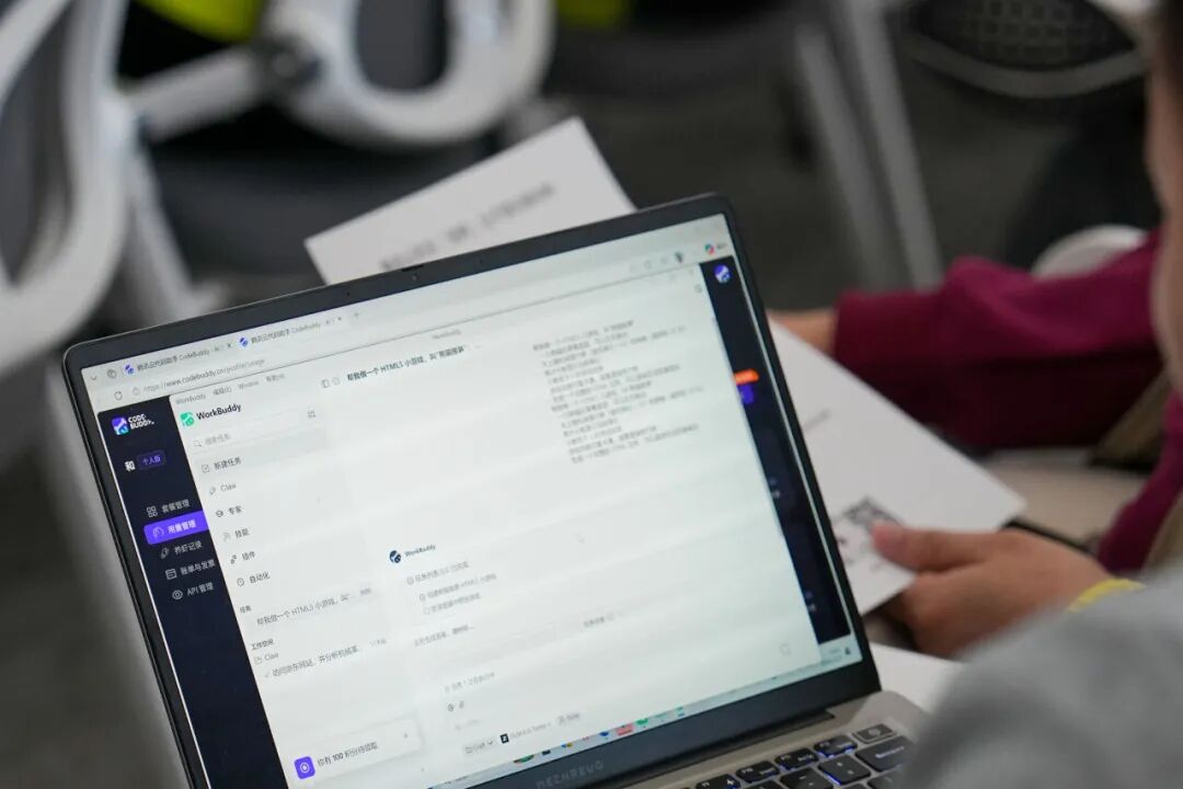 3月22日,在北京舉行的“騰訊云社區龍蝦公開課”活動上,參與者體驗使用騰訊AI智能體工具Workbuddy。鞠煥宗攝(新華社)