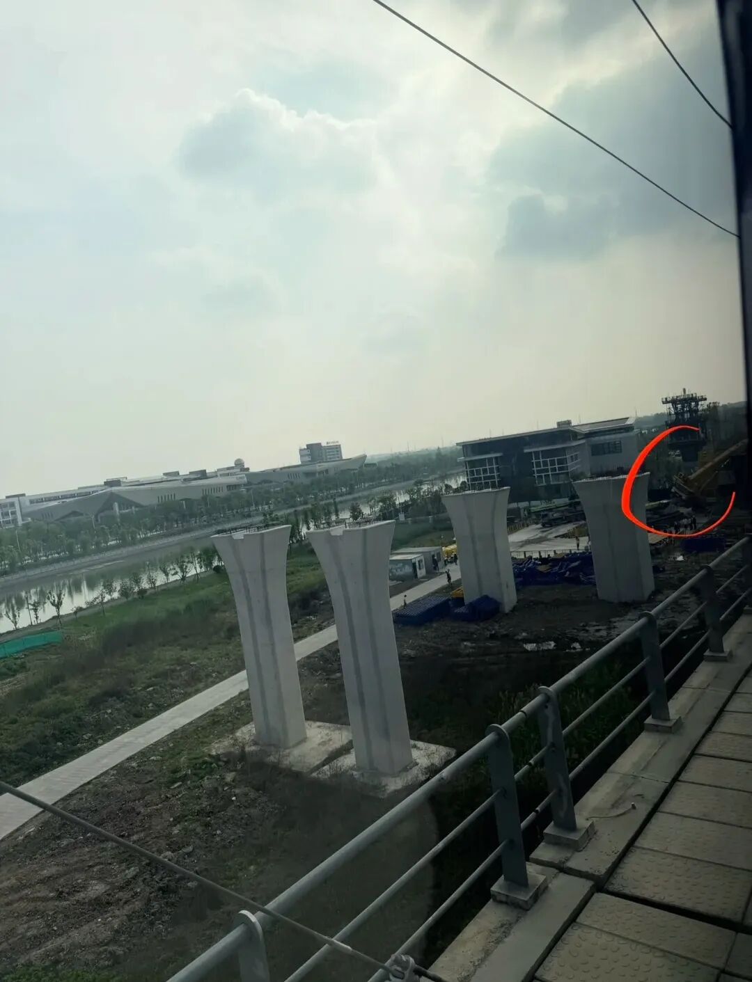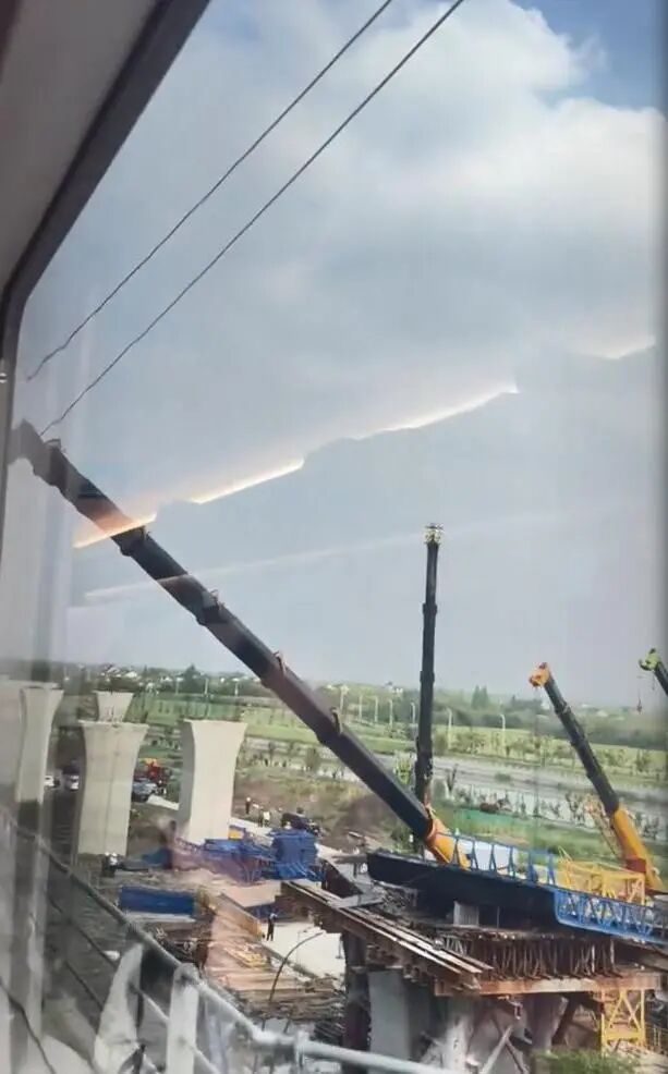 另有網(wǎng)友發(fā)布的視頻顯示,工地正在修建橋墩,一輛吊車(chē)吊臂傾斜著,幾乎碰到了鐵路上的供電線。列車(chē)通過(guò)該處時(shí),速度非常慢,一兩分鐘后列車(chē)就抵達(dá)湖州南潯站。